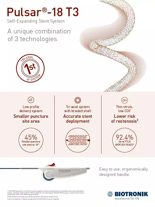 El stent Pulsar-18 T3 diseñado para un tratamiento más eficaz en lesiones de arteria femoral superficial, poplítea proximal e infrapoplitea de hasta 200 mm. Pulsar-18 T3 presenta un sistema único que combina tres tecnologías para mejorar el proceso de implantación. El perfil bajo de 4-F, a diferencia del 6-F, reduce los riesgos de acceso y […]